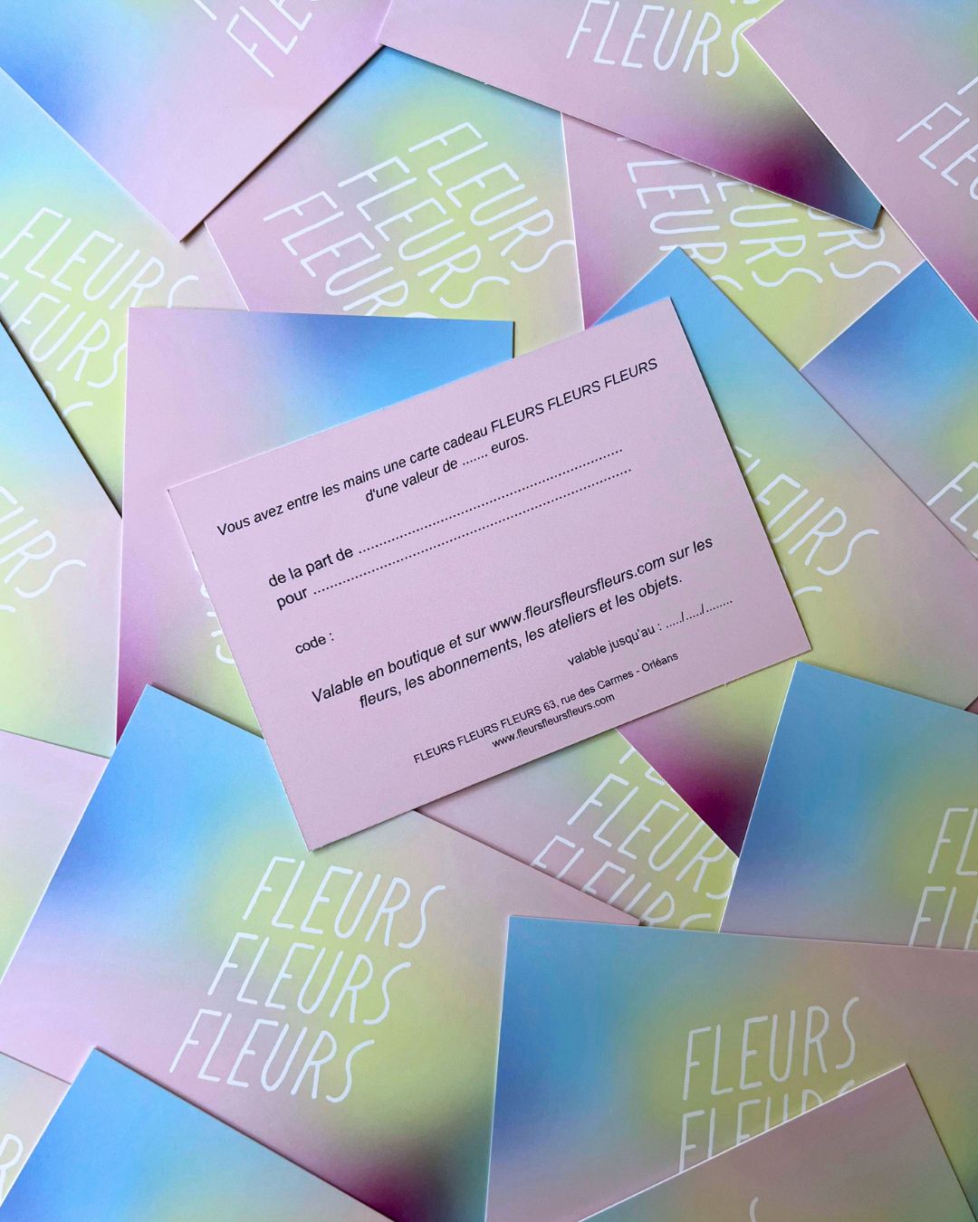 En panne d'idée ? Offrez une carte cadeau FLEURS FLEURS FLEURS et faites plaisir à coup sûr !